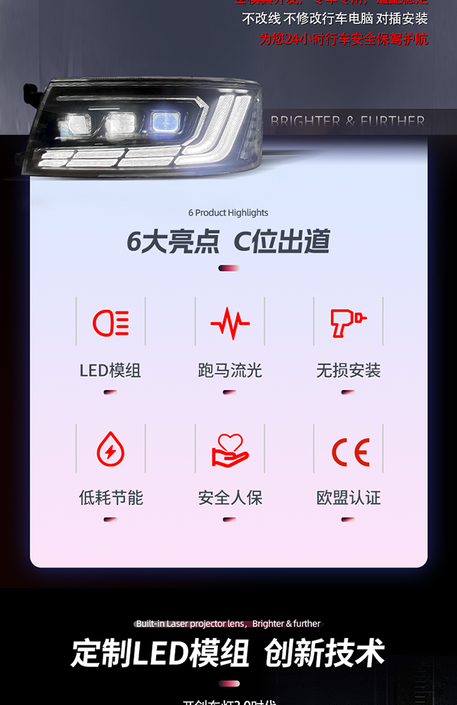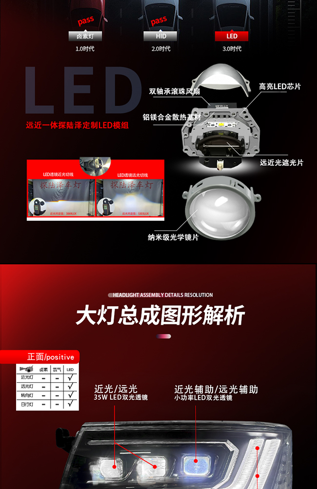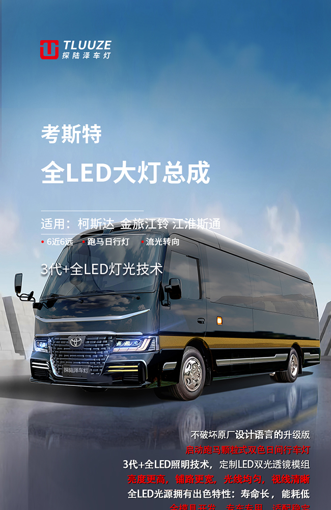 探陆泽车灯 考斯特全LED跑马大灯总成新款上市!