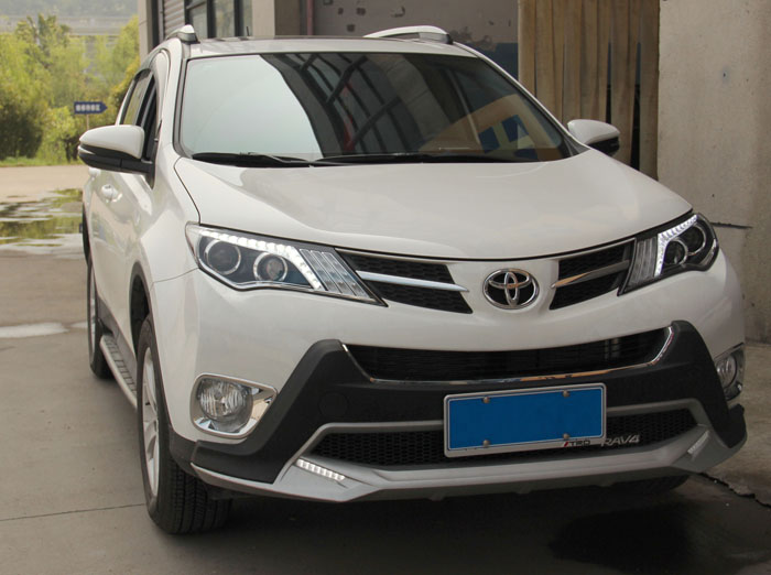 更换了探陆泽氙气大灯总成的丰田2013-2014 RAV4获得了高品质的远光、近光灯透镜以及高配版LED泪眼大灯,不仅外表新颖,而且功率小,亮度高,比原车卤素灯亮3倍,让您的大灯在提升功能的同时不失尊贵而且更酷!